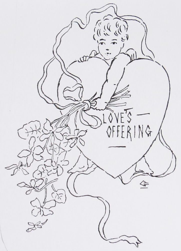 Edwardian makers of greeting cards could not commercially promote erotic love; thus Cupidic affection is rendered with more restraint and naivety. Such restraint can be seen in a “Valentine Souvenir” offered in the February 1896 issue of The Modern Priscilla.